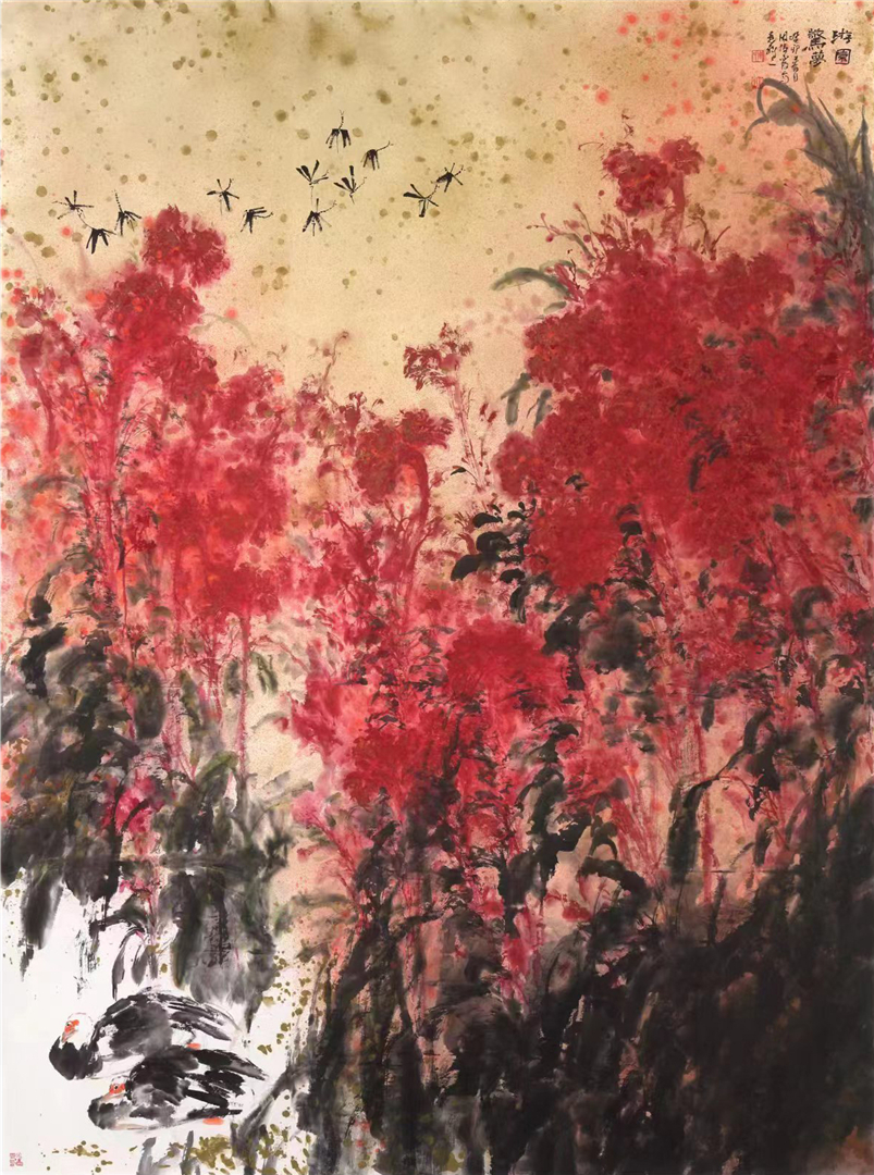 2023年《雨林奇卉》在亚洲百名优秀女画家作品展展出。